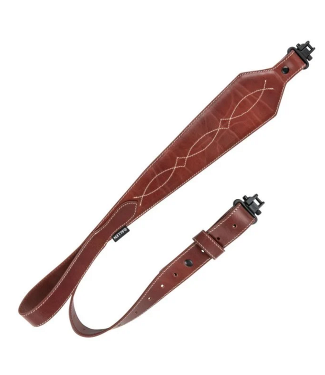 Hunt like a modern pioneer with the Heritage Western Scallop Leather Rifle Sling by Allen Company. Whether you carry a rifle for work or in the fields while on a hunt, our rifle slings have your back no matter what. Made entirely from the highest quality leather, the Western Scallop is one of kind. Not only does the leather sling provide added support, but the top-grain texture provides natural resistance where you need it the most. Aside from the durability, the rifle sling provides additional comfort. The sling straps are layered for additional padding, helping you carry your rifle effortlessly across any terrain. The sling features a thumb hold to enable you to carry your firearm securely and comfortably under normal or stressful conditions, without having to constantly readjust the firearm on your shoulder. Our rifle sling includes a one-piece swivel, tested to hold up to 500-pounds. Firearm sling is fully adjustable from 28-inches long fully tightened to 35-inches long when fully extended. The subtlety within the finish is what makes this rifle sling so unique; featured on the front is a scallop design embossed in the leather with white stitching along the trim. Made with simple and effective technology, the Western Scallop Rifle Sling will help you enjoy every second when you’re out on the field.