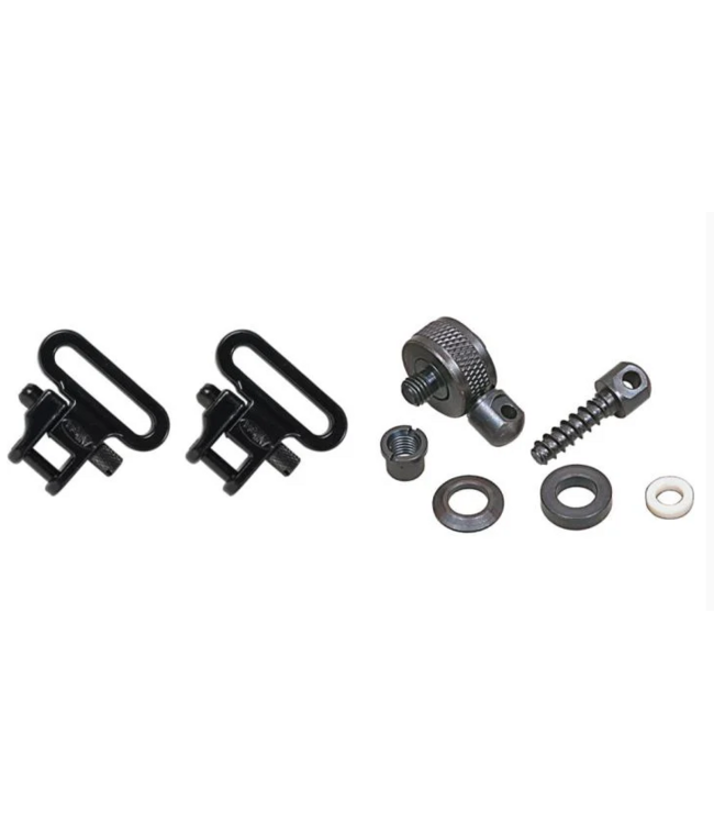 The Shotgun Swivel set by Allen comes with two magnum swivels that fit most pump-action and semi-automatic shotguns without hardware installed. The swivels are designed for slings up to 1-inch wide. It contains the necessary hardware to install swivels on most pump-action and semi-automatic shotguns. A threaded stud designed for installing into wood or synthetic stocks is included for the buttstock attachment. A rotating stud that requires drilling the factory magazine tube cap is included for attaching to the fore-end.