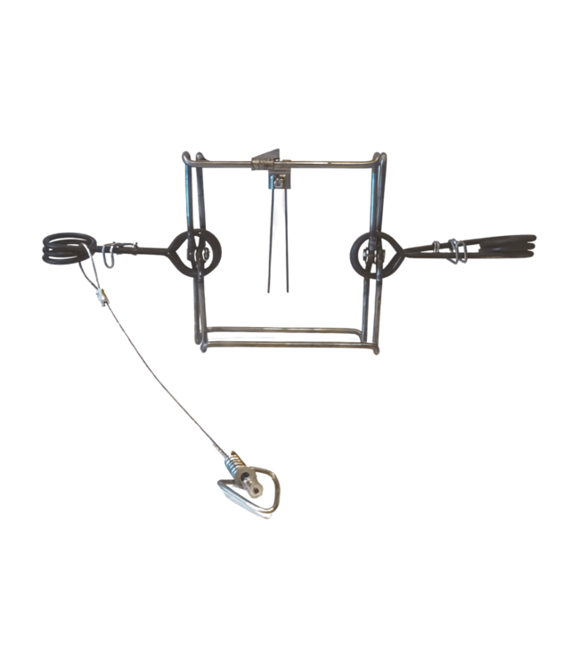 This trap is equipped with a one-piece trigger and safety hooks that stay securely in place, making it a safe and dependable choice for trapping a variety of game such as fisher and raccoon. The 6-inch jaw spread and double spring design provide unmatched power and efficiency.