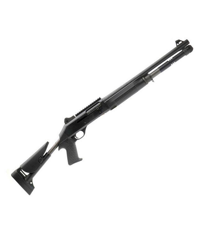 This is the foundation on which all Benelli M4 Auto-Regulating Gas-Operated (A.R.G.O) semi-automatic shotguns are built. The A.R.G.O. system makes them fast cycling and ultrareliable. Optimized for tactical response and personal defense, the M4 features a tactical stock, adjustable rear ghost-ring site, windage-adjustable front sight, and a Picatinny rail for a light or optics.