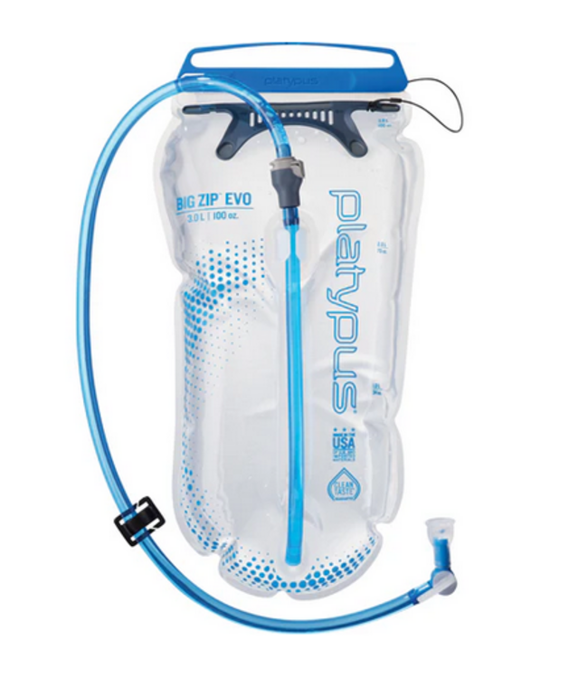 Introducing the Big Zip EVO—the latest evolution in taste-free hydration. The Big Zip EVO delivers a significantly higher flow rate than previous Platypus reservoirs and a host of new features, making it a great option for backpackers, hikers, and mountain bikers.