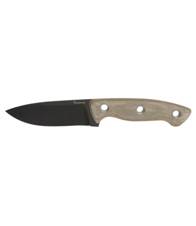 The Browning Desolation Fixed Small Hunting Knife is a versatile tool designed for both bushcraft and hunting. It features a robust 440C stainless steel modified drop point blade, known for its ability to hold an edge and ease of sharpening. The knife's full-tang construction enhances its balance and durability, making it reliable for various outdoor tasks.