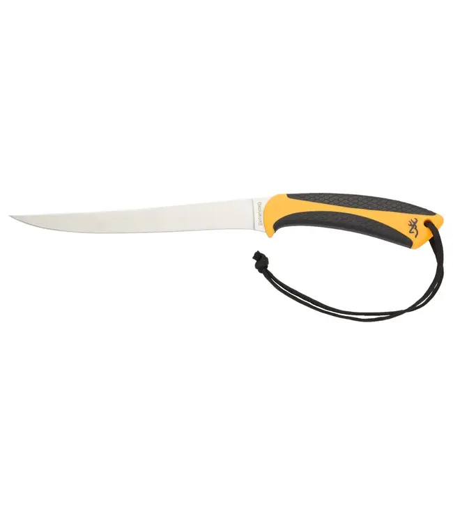 The White Water Fillet Knife is a robust and reliable tool designed for hunters and outdoor enthusiasts who need a dependable knife in wet conditions. This knife features a fixed, rust-resistant 420J2 stainless steel trailing point blade, offering the perfect balance of flexibility and precision for making delicate fillet cuts. Its engineering ensures that it withstands the challenges of outdoor use while maintaining sharpness and durability.