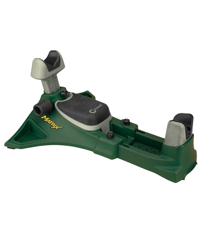 The Matrix combines great features and rock-solid stability. The innovative, ultra-rigid U-channel frame quickly adjusts in length for the perfect fit with any gun while remaining completely stable. The 2-piece sliding frame incorporates an open center channel with extra clearance for hi-capacity detachable magazines (AR-15 style guns) as well as lever action guns. This rest also has a convenient storage area incorporated into the front of the base which features a removable lid that adds additional clearance when detached but provides a rubberized rear support surface for firing handguns when left in place.