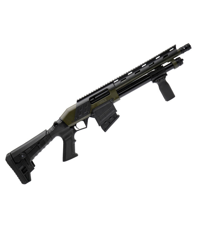 The Canuck Recon 3 is a magazine-fed pump-action shotgun, perfect for tactical and hunting applications. This 12-gauge shotgun features a 12-inch chrome-lined barrel with a breacher choke, providing versatility and durability.