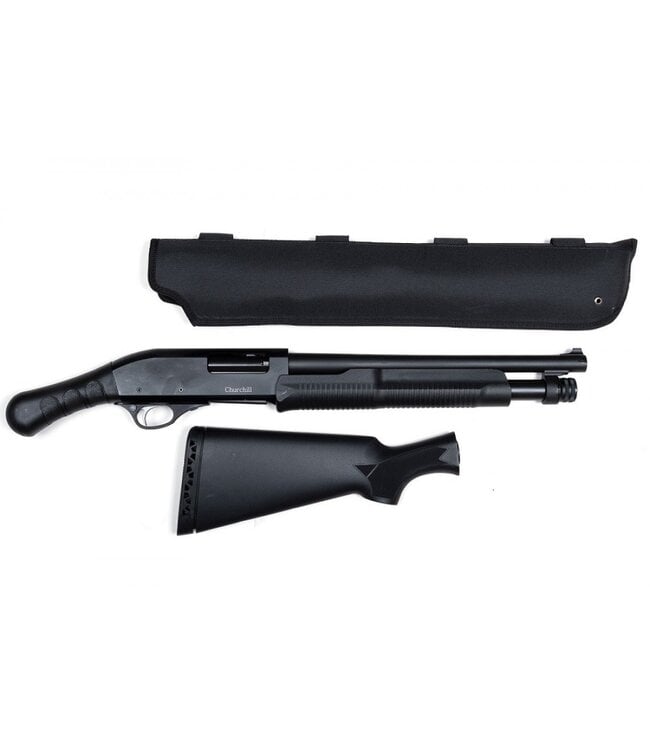 Tactical shotgun, Comes with 2 stocks (Full stock).Black12 Gauge3″ Chamber4+1 rounds15" BarrelFixed Cylinder ChokeFree Scabbard included.