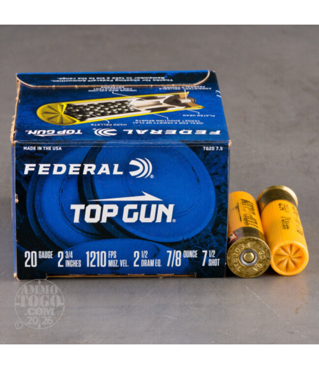 The Federal 20 Gauge Top Gun 2 3/4" 7/8oz. #7 1/2 Shot Ammo is designed for shooters seeking consistent performance at an affordable price. This ammunition is a favorite among target shooters for its reliability and high-quality construction. Whether you're breaking clays or honing your shooting skills, this ammo delivers the performance you need.
