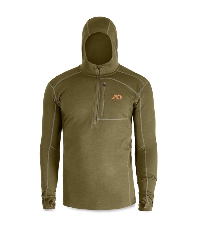 The Men's Kiln Hoody from First Lite is a versatile, midweight base layer crafted from 250-gram Merino-X fabric, designed to keep outdoor enthusiasts warm and comfortable across a wide range of temperatures. Its Merino wool construction ensures excellent moisture management and odor resistance, making it ideal for both active pursuits and casual wear.