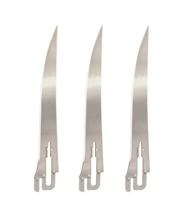 Introducing the 5" Talon fillet blades, crafted from high-quality AUS-8 Stainless Steel and honed to precision for surgical sharpness, mirroring the exceptional quality found across all Havalon Blades. Designed to fit seamlessly onto all Talon handles, these fillet blades are engineered to deliver unparalleled performance and reliability. Whether you're filleting fish or tackling other precision cutting tasks, trust in the superior sharpness and durability of Havalon's 5" Talon fillet blades to get the job done with precision and ease.
