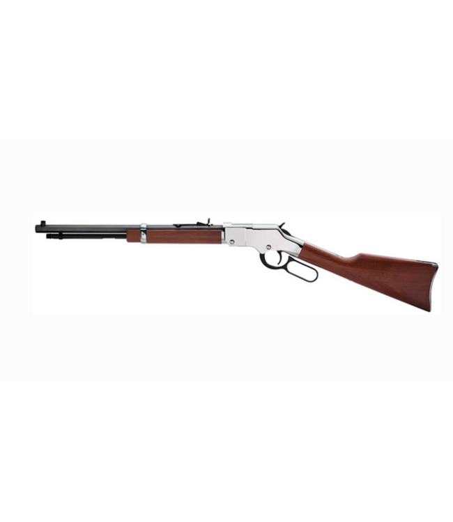 The Henry Golden Boy Youth Silver .22LR is a finely crafted lever-action rifle, epitomizing the excellence of gunsmithing. Its blued octagonal barrel and American walnut stock are complemented by a distinctive silver receiver, buttplate, and barrel band, which all contribute to its striking visual appeal. This rifle offers a smooth action and effortless operation, making it an ideal choice for both right and left-handed shooting enthusiasts.
