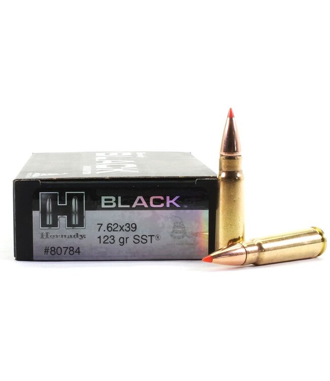 Hornady Black SST 123 Grain Brass 7.62 X 39 ammunition is engineered for superior performance in a variety of firearms. Known for its precision and reliability, this ammo is ideal for both hunting and target shooting. Each round is loaded with Hornady's legendary SST bullet, ensuring optimal performance with every shot.