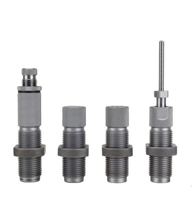 The Hornady Custom Grade New Dimension 4-Die Set is a great die set for the avid reloader. The set includes the CGND Full Length Sizer Die, CGND Expander Die, CGND Seater Die, and CGND Crimp die. The Full Length Sizer Die features a Zip Spindle, with a series of light threads cut on the spindle and spindle collet. This is designed to eliminate spindle slippage and makes tightening the spindle lock a breeze when making adjustments. The CGND Seater Die is designed with a floating bullet seater alignment sleeve and seating stem that aligns the bullet with the case, to improve bullet seating and accuracy. The Case Mouth Expander Die is adjustable, and the Crimp Die is great when using heavy loads. Shellholder sold separately.