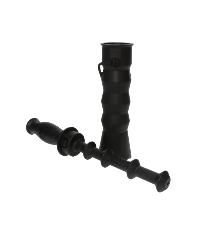 Featuring a rod-type ram with cylindrical rings, the device generates friction to create authentic rattle sounds. The rod securely snaps into the cylinder, providing quiet portability during your hunting adventures. This device is ideal for those looking to enhance their hunting experience with minimal noise disturbance.