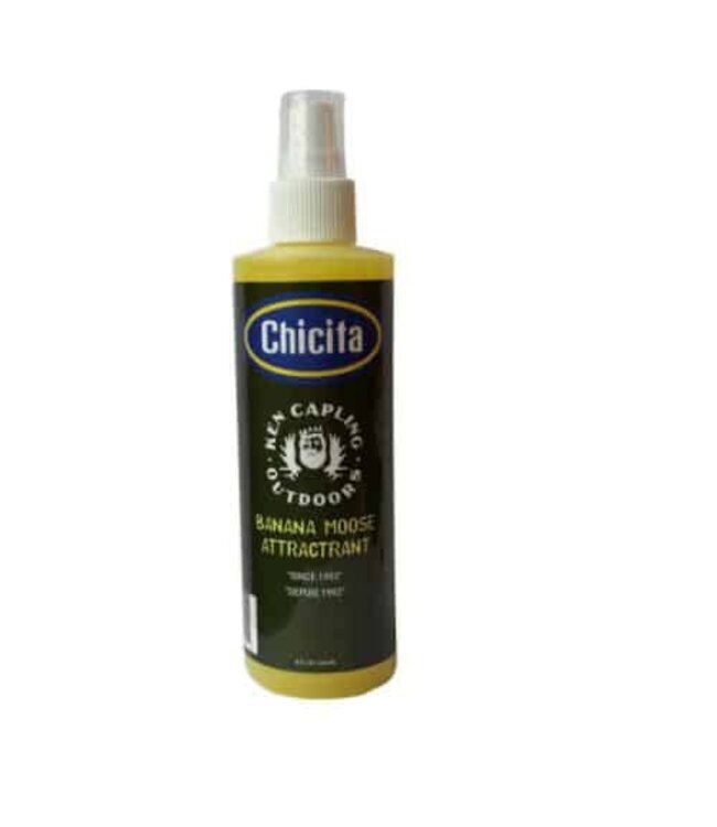 Ken Capling Chicita Banana Moose Attractant is expertly crafted for hunters seeking to enhance their moose hunting experience. This attractant spray is designed to draw moose in with its enticing aroma, making it a must-have for any serious hunter.