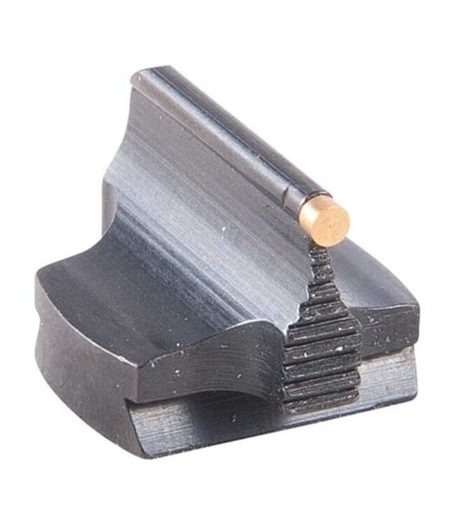 The Marble Arms #45W Front Sight is an expertly crafted accessory for rifle enthusiasts seeking precision and reliability. This barrel-mounted front sight features a 1/16 inch gold bead, providing enhanced visibility and accuracy during shooting. Its steel construction with a polished blue finish ensures durability and a sleek appearance on any firearm.