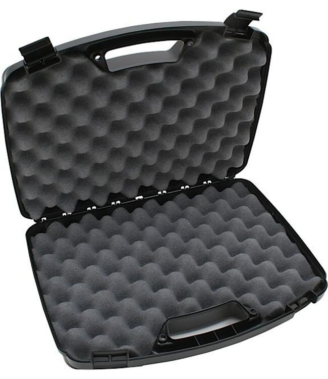 This pistol case is sized for automatics and scoped revolvers with barrels up to 6". There is also room for a trigger lock or padlocks (not included) and the case is pad lockable.