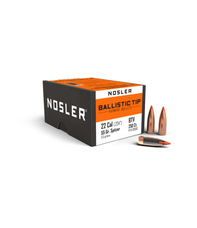 Thriving on ultra-high velocity loads, the Ballistic Tip® Varmint bullet offers devastating performance at distances both near and far. The aerodynamic polymer tip (color coded by caliber) combined with the ultra-thin jacket mouth assures rapid and violent expansion at either end of the velocity scale. The bullet is equipped with a gradually thickening jacket wall that provides maximum energy transfer and optimum weight retention while the ballistically-engineered Solid Base® acts as a platform for large diameter mushrooms. No matter the rifle/cartridge combination you’re shooting or what varmint you’re shooting at, Nosler Ballistic Tip® delivers match-grade accuracy with all the performance characteristics serious varmint hunters are looking for.