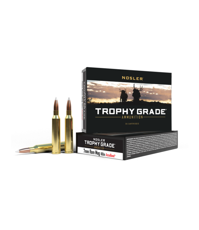 The Nosler Trophy Grade 7mm Rem Mag 160gr AccuBond is a premium ammunition choice for hunters and shooting enthusiasts looking for accuracy and performance. Featuring the renowned AccuBond bullet, this ammunition delivers consistent trajectories and controlled expansion, making it suitable for a variety of game. The 7mm Rem Mag cartridge is known for its versatility and power, providing a reliable option for long-range shooting.