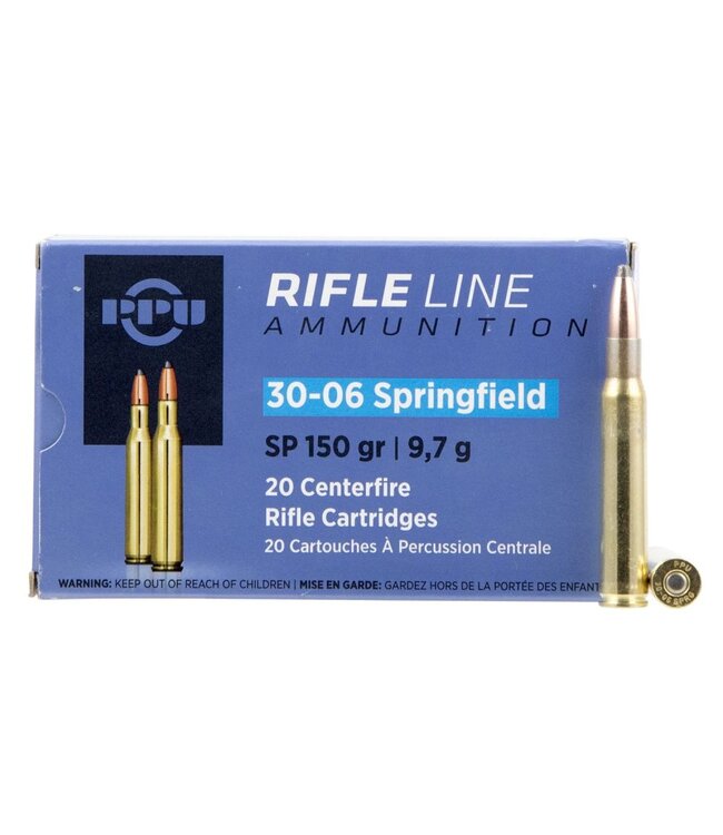 The PPU Standard Rifle ammunition in 30-06 Springfield caliber is crafted for precision and reliability, making it ideal for big game hunting. Each cartridge is carefully manufactured with top-quality components to ensure consistent performance and accuracy.