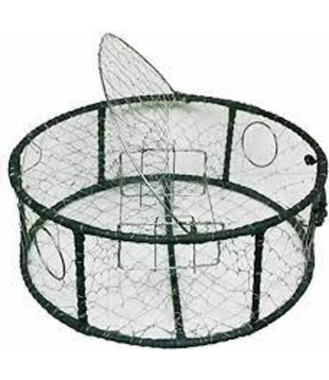 The Promar Stainless Steel Crab Pot is a rugged and durable crab pot. This trap features a heavy duty rubber wrapped rebar frame, stainless steel wire mesh, two tunnel style entrances, a top hinged tending door, and two escape rings