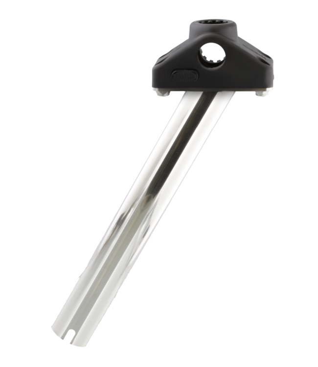 This stainless steel Big Game Gimbal Mount Rod Holder works in conjunction with flush mount gimbal rod holders. Made from heavy duty polished 304 stainless steel tubing and comes equipped with our 241L Locking Side Deck Mount. This setup allows you to fish your rod with any Scotty post mount rod holder quickly and easily at multiple angles and is a great non-permanent solution with no drilling or permanent mounts on your boat.