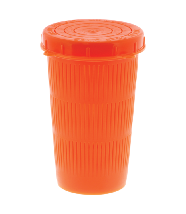 A rugged container for storing bait or for protecting bait in a crab or prawn trap. The quick unscrew lid and vented body have the right size slots to send the bait smell out, yet protect the bait from most parasites. These Vented Bait Jars come in either .5 litre OR 1 litre sizes with a lid!Â