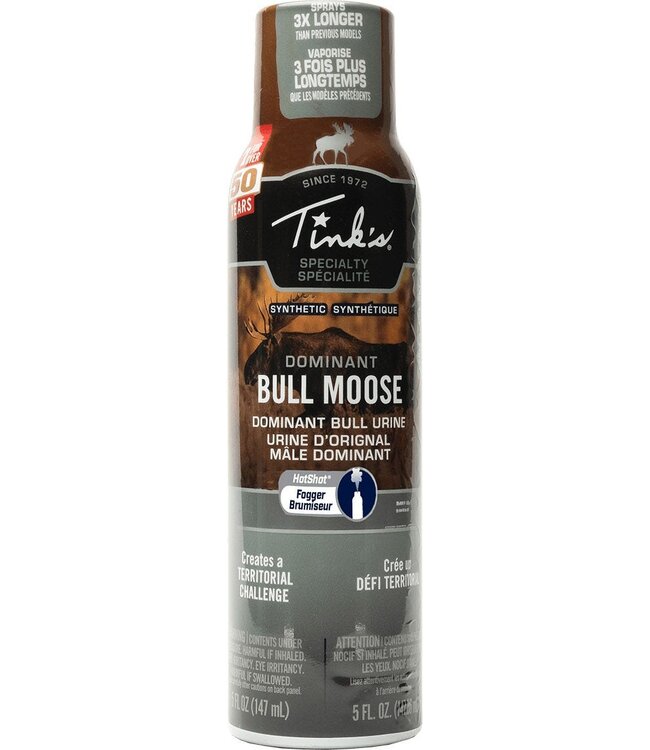 The Moose Synthetic Urine Fogger - Dominant Bull - 147 ml is expertly designed to mimic the scent of a dominant bull moose, making it an essential tool for hunters aiming to attract the largest of the deer species. This synthetic scent is crafted to replicate the territorial signals that moose use during the rut, enhancing the chances of drawing them into your area.
