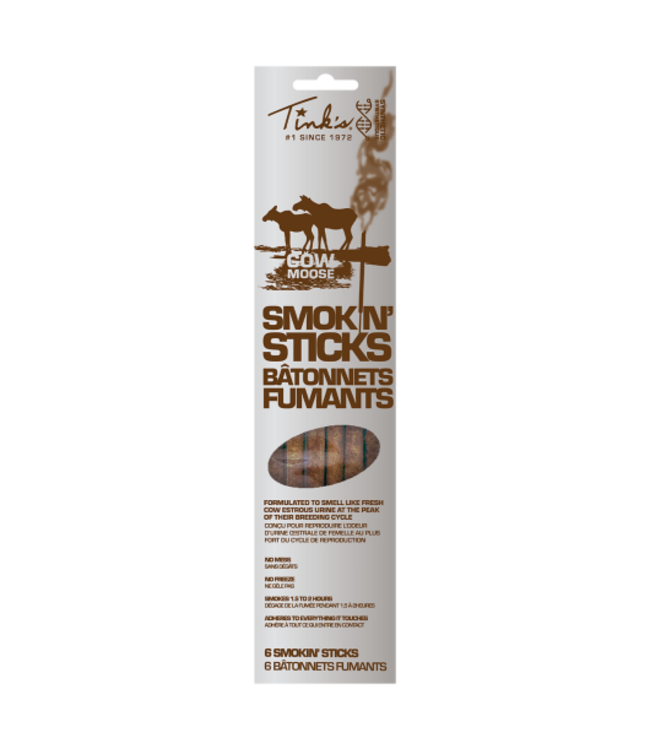 Tink's® Moose Smokin’ Sticks – Cow Estrous are essential for hunters looking to attract Bull Moose during the pre-rut and rut seasons. These synthetic smokin' sticks effectively mimic the scent of a cow moose in estrous, a scent that is irresistible to bulls during their active mating periods. The smokin’ sticks provide a dual benefit by not only attracting moose but also masking human scent, helping hunters remain undetected.