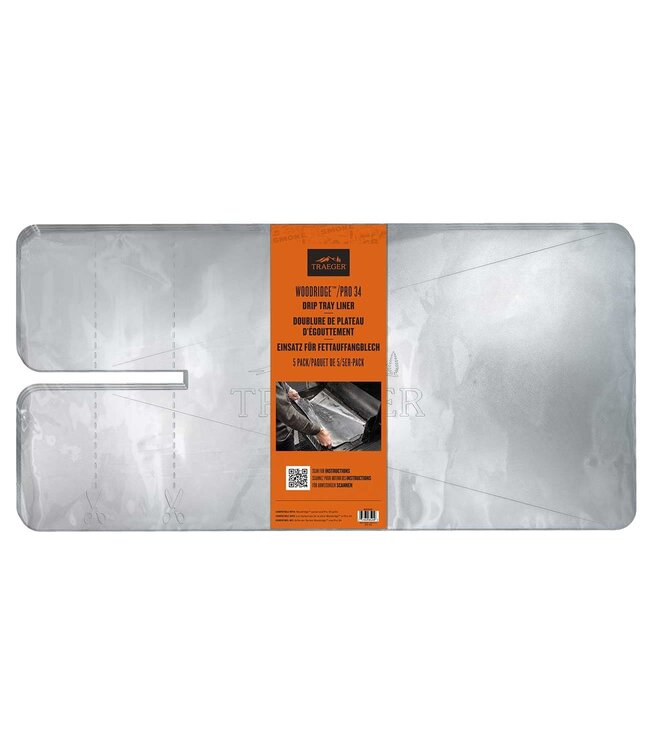 The Traeger Woodridge-Pro 34 Drip Tray Liner (5-Pack) is designed for hassle-free grilling, allowing you to focus on perfecting your culinary creations rather than the cleanup. Crafted from heat-proof aluminum, these liners seamlessly fit the Pro 34 and Woodridgeâ„¢ series grills, making post-cook cleaning a breeze. Ideal for low and slow cooking at temperatures of 350ËšF and below, these liners ensure optimal performance and durability for barbecue enthusiasts.