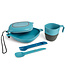Crafted for convenience and durability, this kit includes a plate, bowl, camp cup, and the versatile Switch Spork utensil set, all secured with a tether for easy packing.