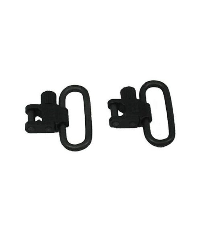 Uncle Mike's QD SS Swivel, 1.25", Black 14033, is a pinnacle of engineering in the realm of Quick Detachable Swivel design. Built by Michaels of Oregon Co., this swivel incorporates the innovative Tri-Lock system, which introduces a third locking mechanism to enhance security against accidental opening. This advanced design ensures the metal swivel body does not contact the gun, preventing potential damage to wood stocks and reducing noise in synthetic designs.