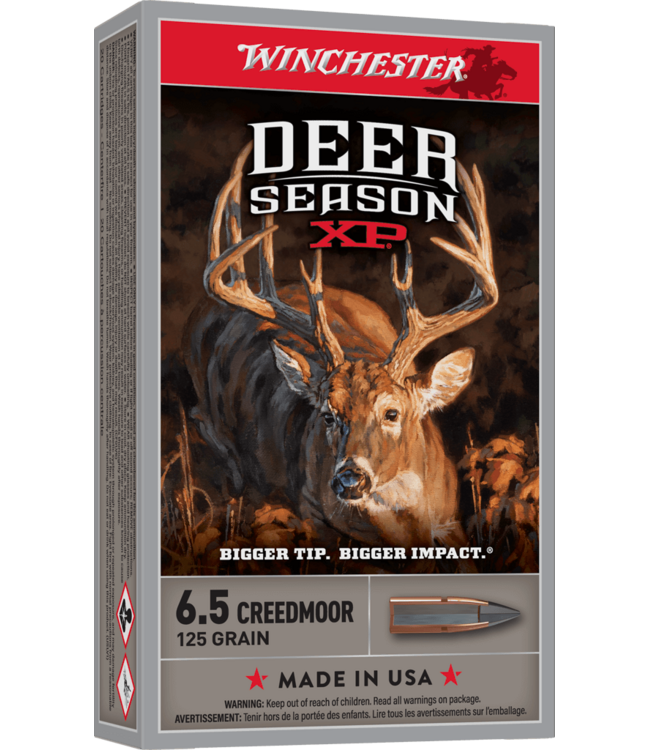 Deer Season XP ammunition combines our extensive experience into a product engineered specifically for deer hunters. The Extreme Point bullet features an oversized impact diameter. A bigger impact diameter means more impact trauma, better energy transfer, and larger wound cavities for faster knockdown.