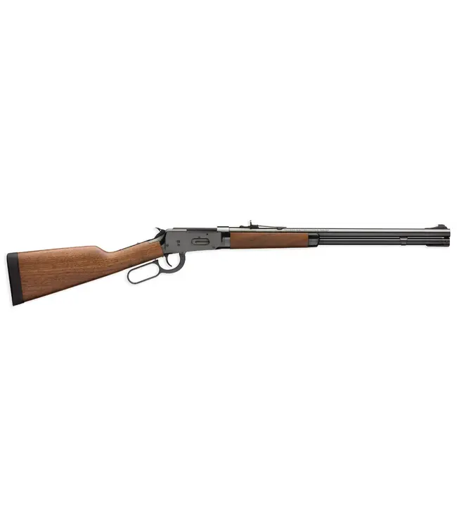 This model features a classic walnut stock with a satin finish, enhancing its traditional aesthetic while providing a comfortable grip. The rifle is equipped with a Marble Arms front sight and an adjustable semi-buckhorn rear sight, allowing for quick target acquisition. Designed with John M. Browning's original takedown mechanism, the Model 94 is perfect for hunting in thick brush, particularly for hogs and other fast-moving game.
