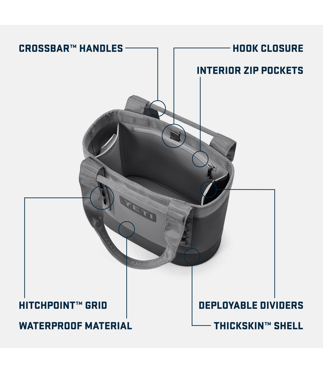 The YETI Camino 20 Carryall Tote Bag is a versatile and durable option for daily use. Crafted with a waterproof and puncture-resistant ThickSkinâ„¢ Shell, this tote is perfect for keeping your belongings safe from moisture and wear. Whether you're heading to the gym, packing up for an outdoor barbecue, or carrying muddy boots, this bag has you covered.