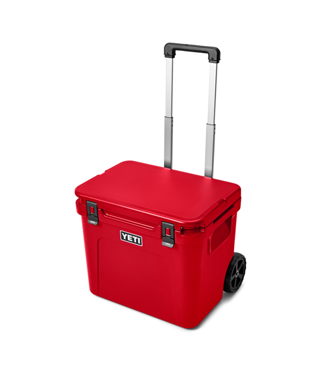 The YETI Roadie 60 Wheeled Cooler is designed for those who demand both durability and functionality in their outdoor adventures. Equipped with a robust PERISCOPEâ„¢ HANDLERetractable for easy maneuvering and NEVERFLATâ„¢ WHEELS, this cooler is built to tackle any terrain while keeping your provisions safe and sound. Its LIPGRIPâ„¢ HANDLES and BEARFOOTâ„¢ NON-SLIP FEET ensure stable transport and secure positioning, whether on a boat or in the backseat.